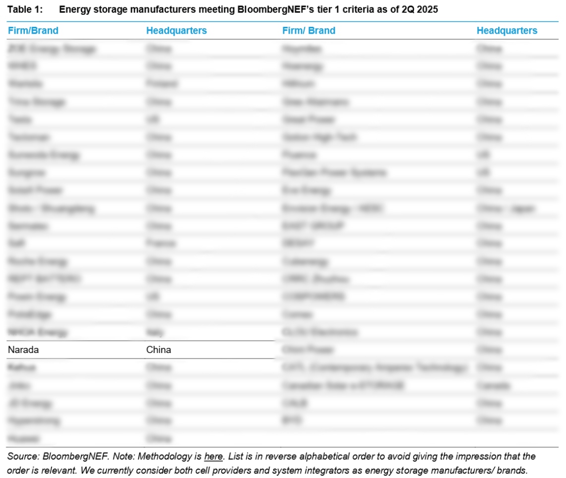 Recently, Bloomberg New Energy Finance (BNEF) released its Energy Storage Tier 1 List for Q2 2025, and Narada has once again been named a Tier 1 energy storage manufacturer.